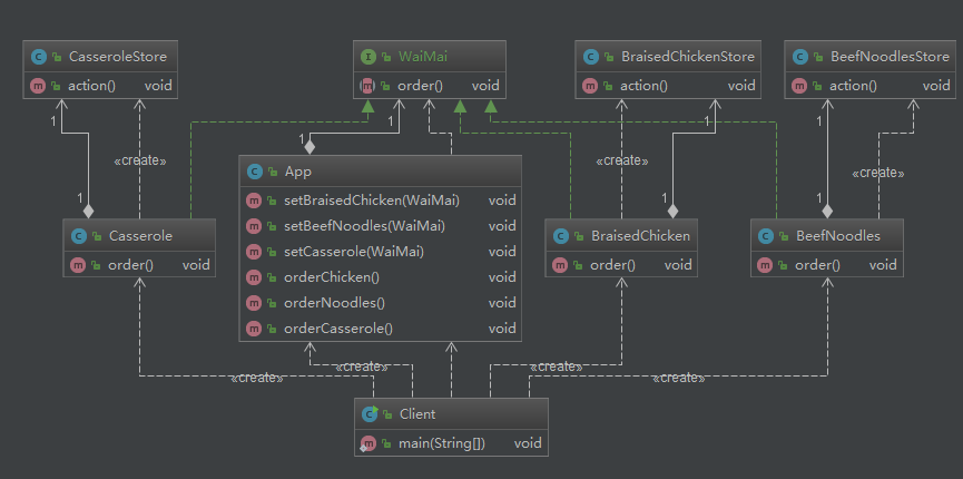 app:调用者/请求者,app中有很多具体命令对象,具体的外卖
